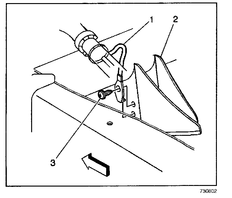 5. Remove the fuel fill pipe ground strap bolt (3).