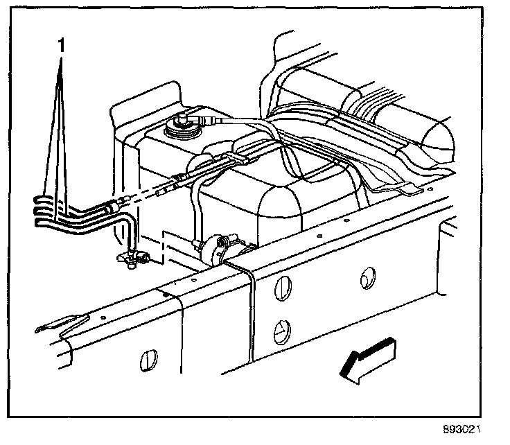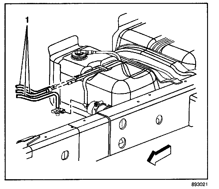 Tighten the fuel fill hose clamp (1) to 2.5 N.m (22 lb in).