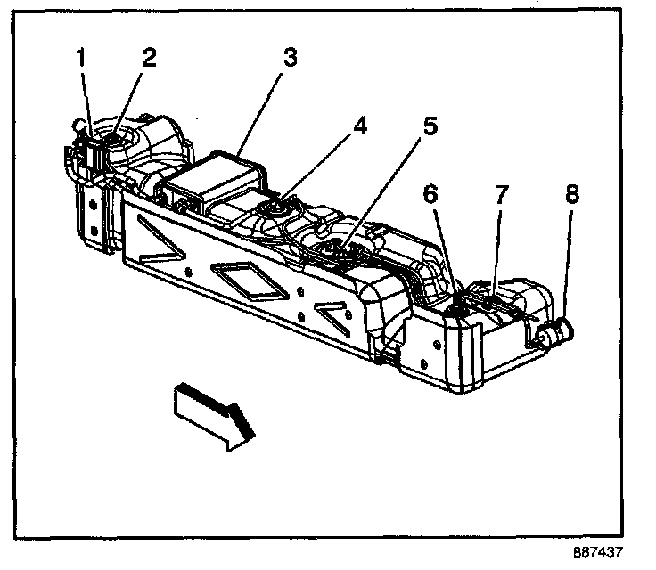 8. Remove the fuel sender assembly (5) from the fuel tank.