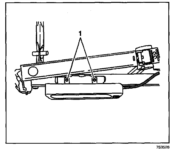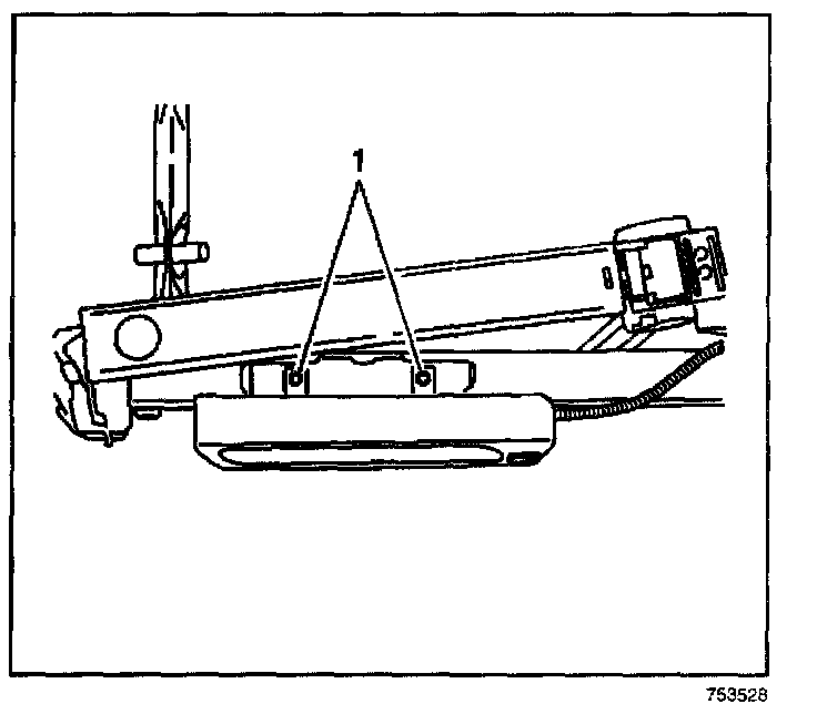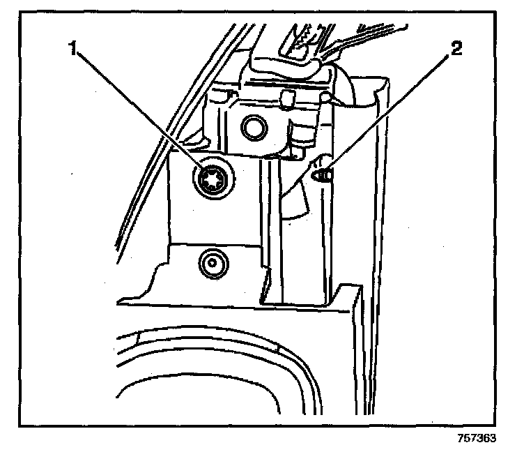 7. Remove the 2 screws (1) that secure the inflatable side impact module to the seat back frame.