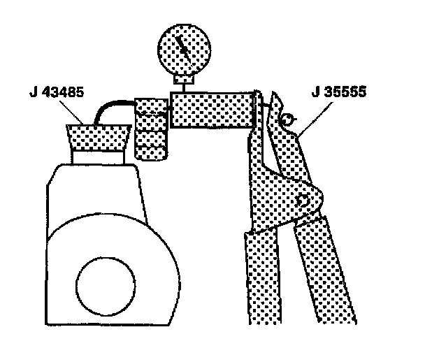 6. Place the J43485 on or in the pump reservoir filler neck.