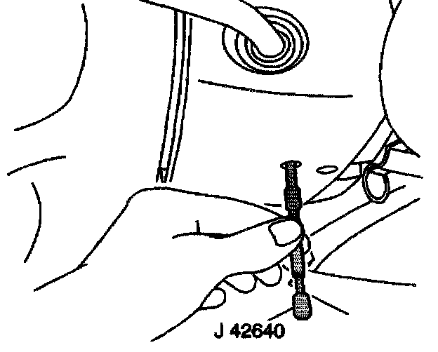 10. Unlock the steering column by removing J42640 from the lower trim cover access hole.