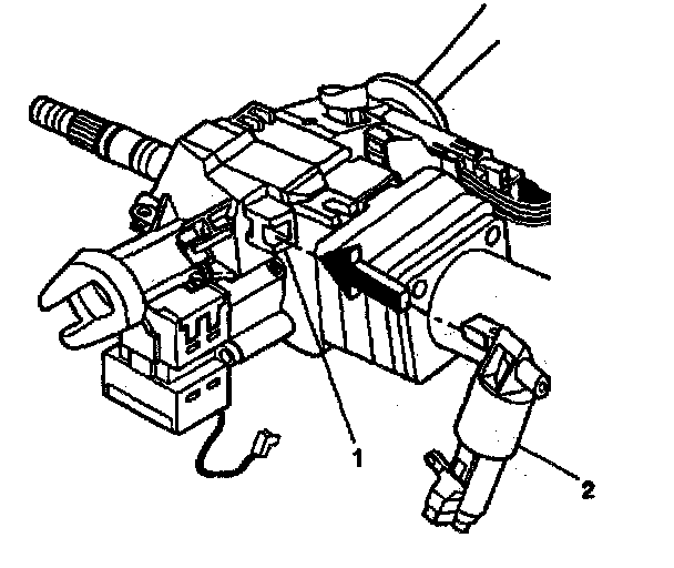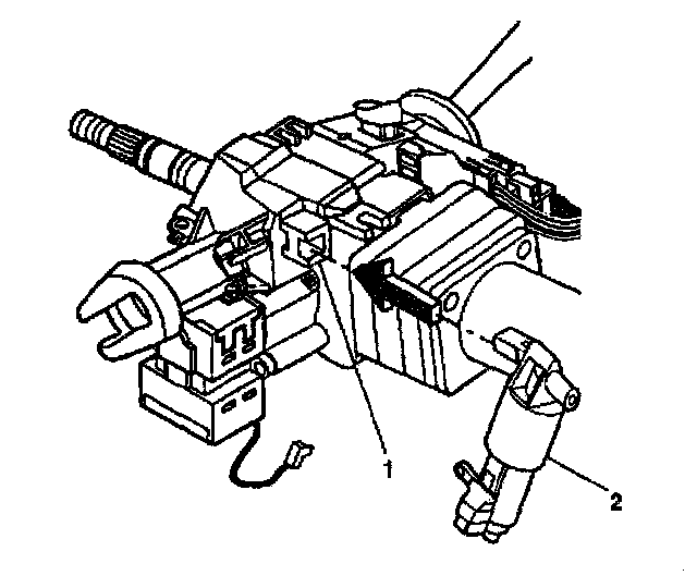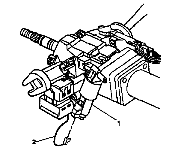 4. Pry the electric park lock (2) off of the ignition lock cylinder case assembly (1).