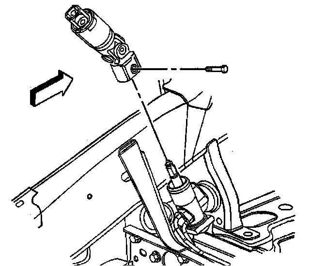 10. Install the lower intermediate shaft retaining bolt to the power steering gear.
