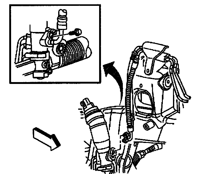 9. Remove the power steering hose assembly to the power steering gear retaining bolt.