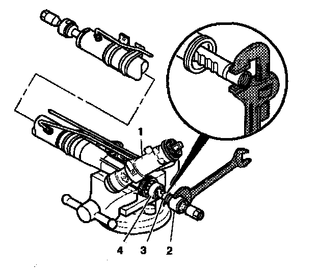 4. Place a pipe wrench on the rack (3) next to the inner tie rod housing (2).