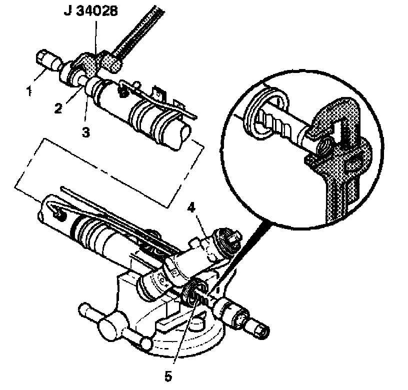5. Place a torque wrench and J34028 on the flats of the inner tie rod housing (2).