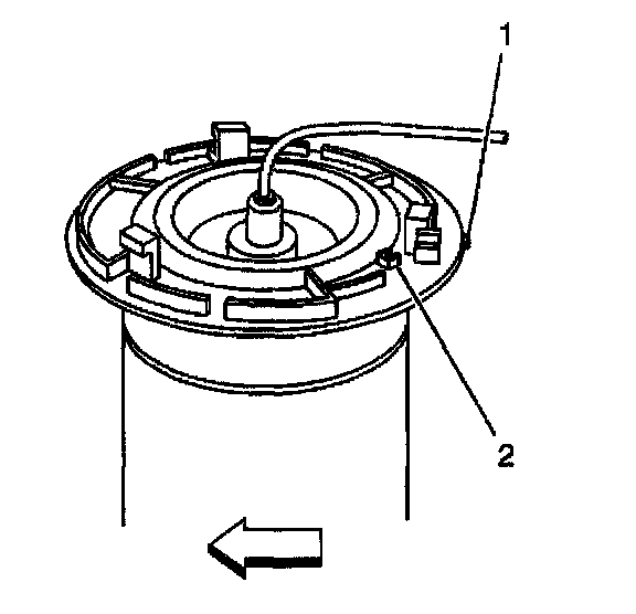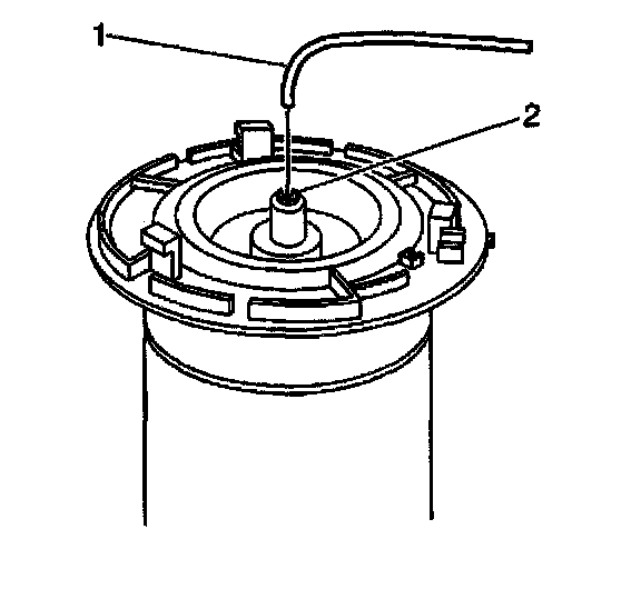 5. Depress the antirotation peg (2) in the air spring top plate located in the upper spring seat.