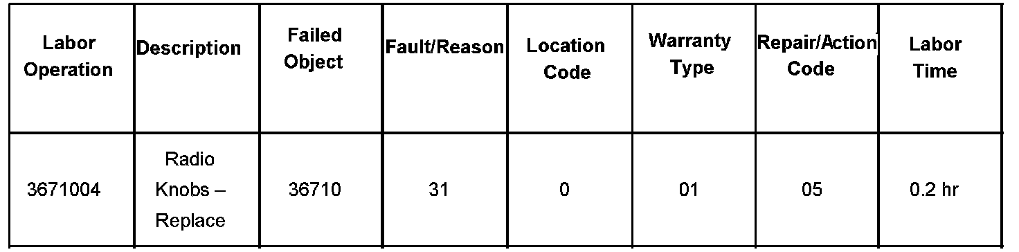 For vehicles repaired under warranty, use the table.