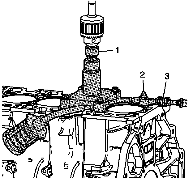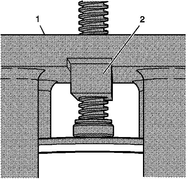 2. Install the cylinder bore sleeve puller EN 45680-402 (1), which is part of EN 45680-400, through the cylinder bore.