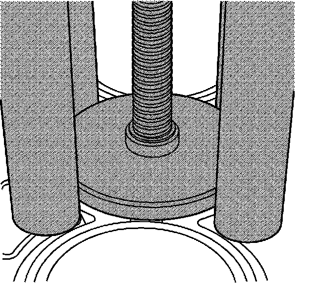 4. Hold the threaded shaft of the cylinder bore sleeve puller EN 45680-402 upward in order to retain the shoe alignment to the bottom of the cylinder bore sleeve.