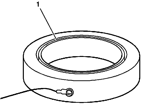 2. Install fixture EN 45680-401/cylinder bore sleeve installer EN 45680-403 assembly (1), which is part of EN 45680-400, over the cylinder bore sleeve (117) and onto the cylinder block. Do not apply downward pressure to the cylinder bore sleeve (117).