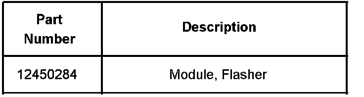 Always use the part number listed in the table below for flasher replacement on the above vehicles.