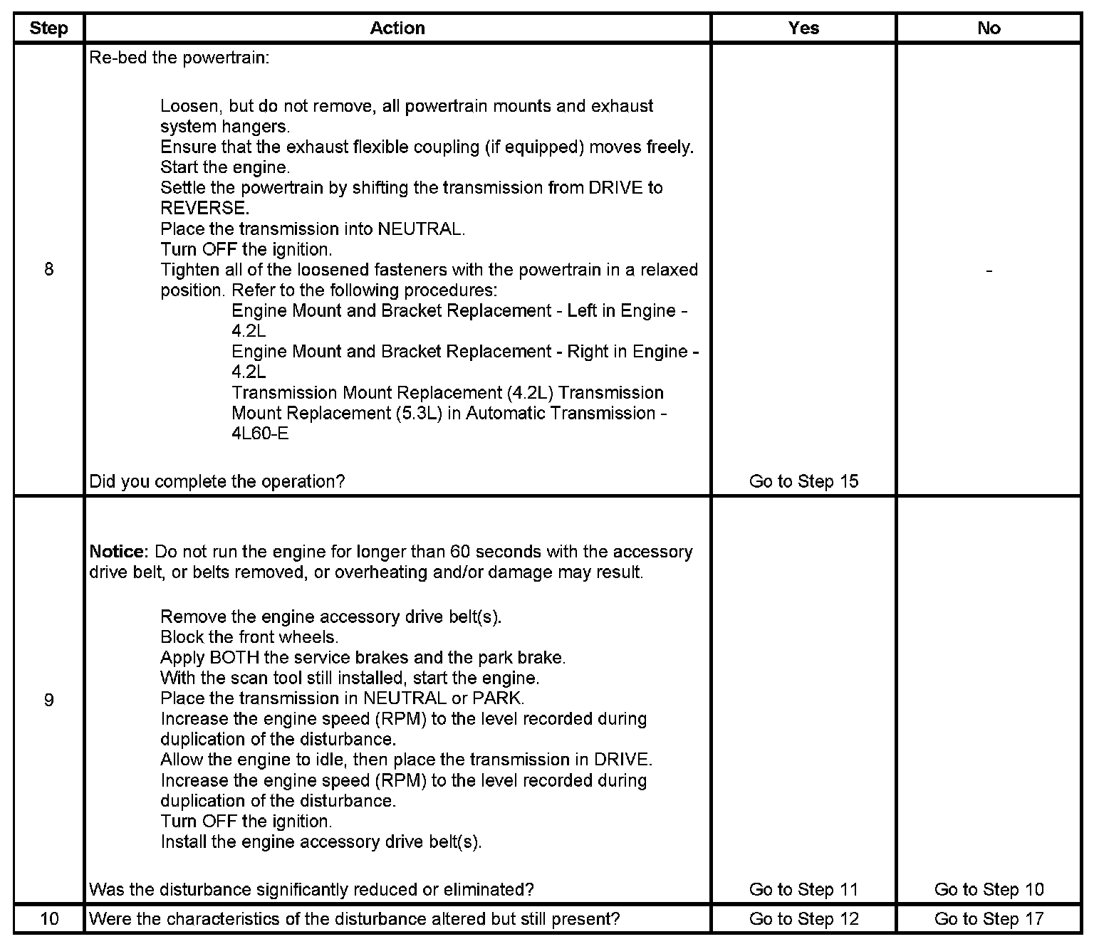 When loosening powertrain mounts in order to re-bed the powertrain observe the following: