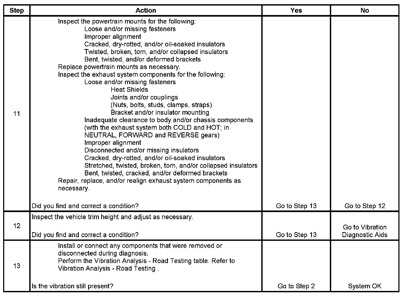 11. Damaged or worn engine, transmission, and/or exhaust mounts may cause a noise or vibration that may be transferred into the passenger compartment.