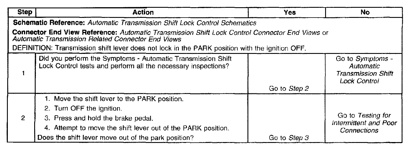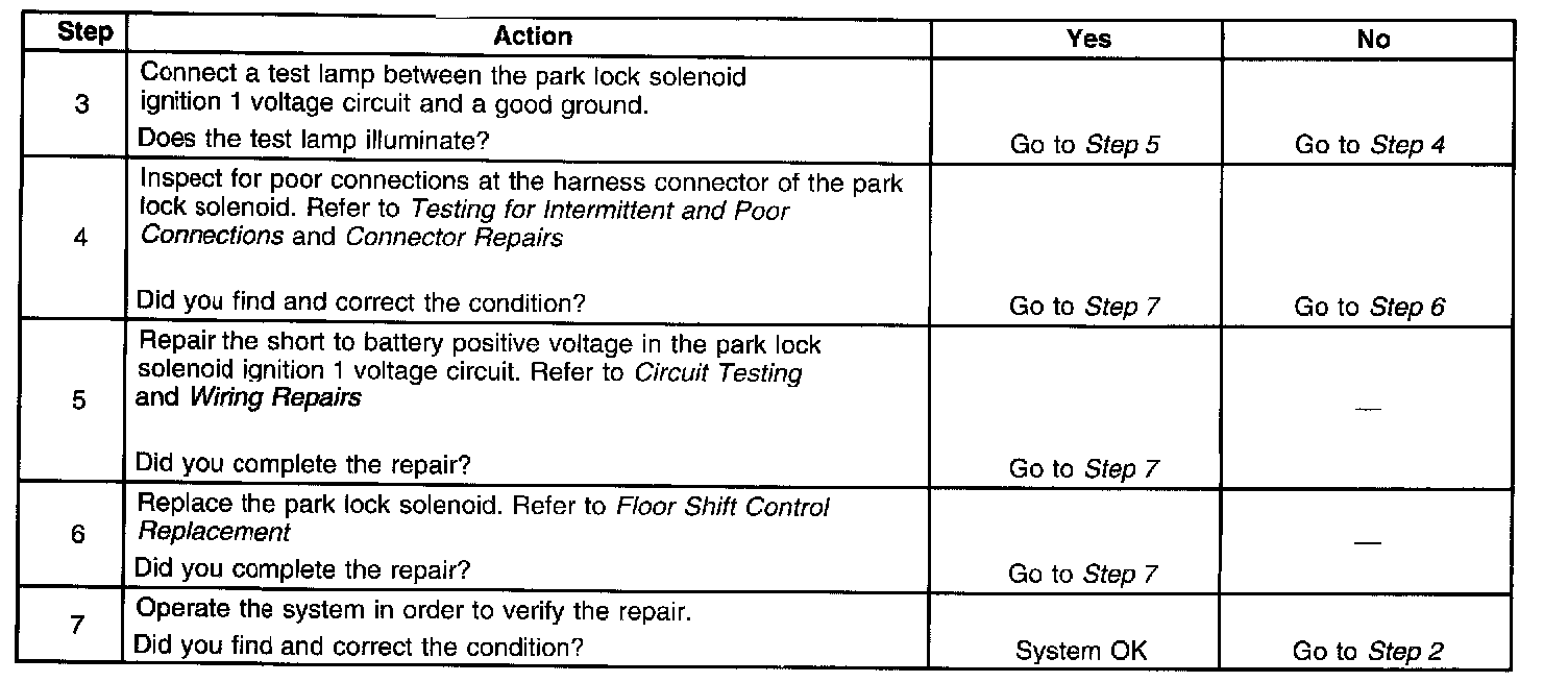 Park Lock Solenoid Inoperative
