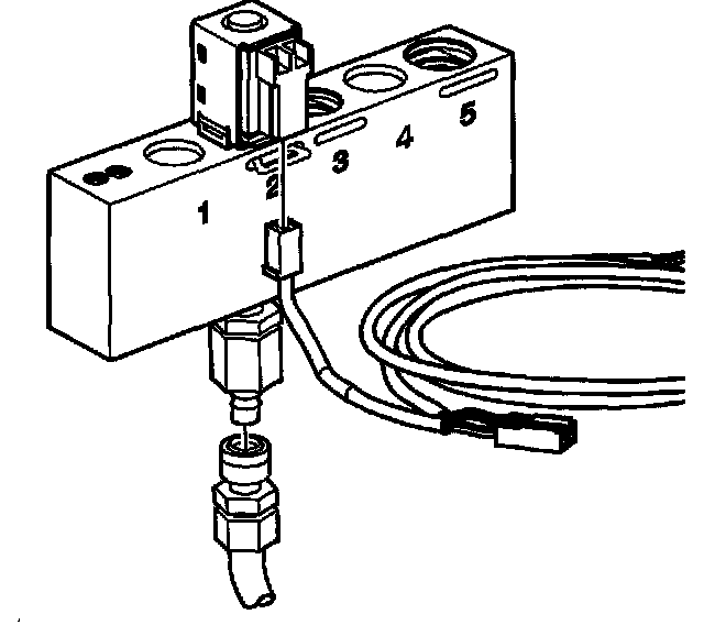 8. Observe the air flow through the solenoid. The flow will completely or nearly completely stop. Replace the solenoid if there continues to be an obvious air leak when the solenoid is energized.