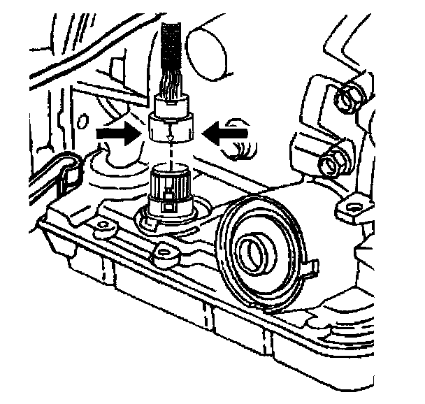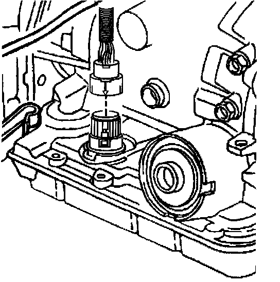 11. Using J 28458, release the pass-through electrical connector from the transmission case.