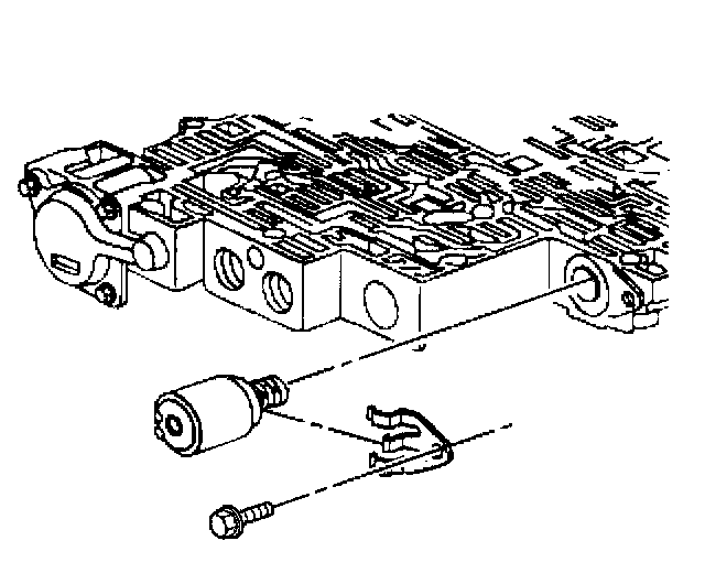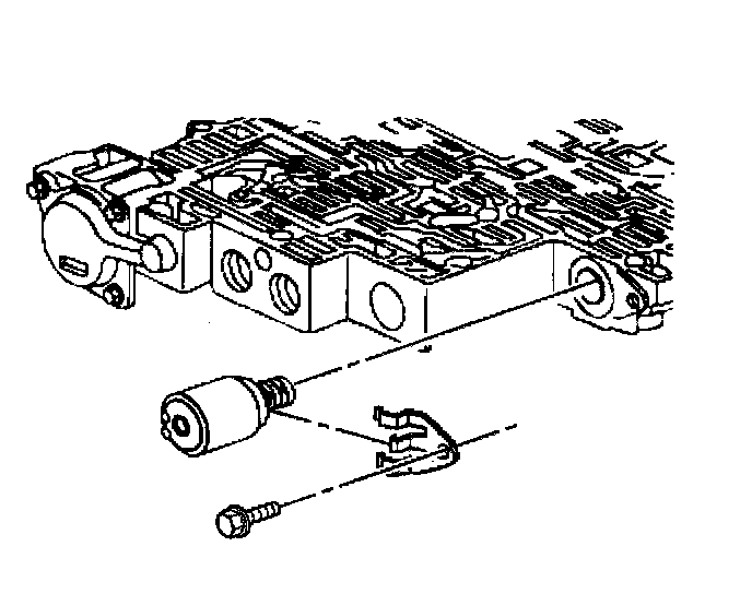 7. Remove the TCC PWM solenoid in order to access one of the TCC solenoid retaining bolts.
