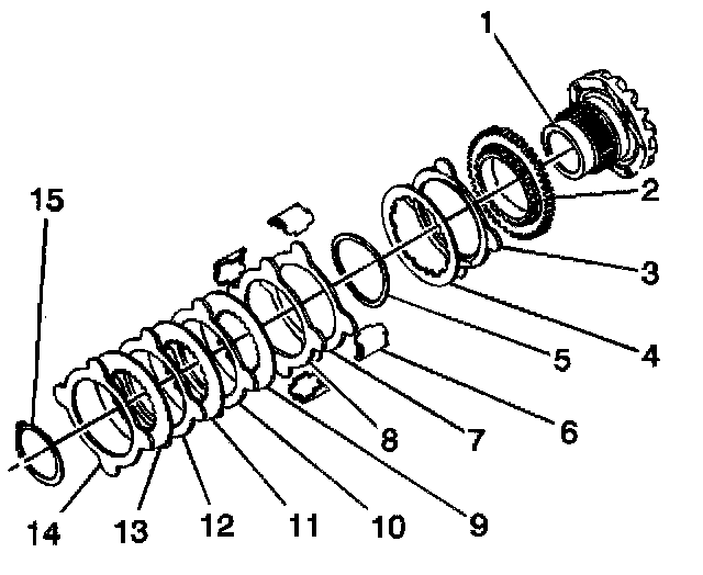 2.2. Remove the clutch discs and the splined discs (7-14).
