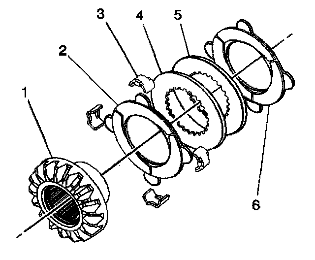 Locking Differential Clutch Disc Assembly - Assemble (8.6 Inch Axle)1. Apply axle lubricant, GM P/N 12378261 (Canadian P/N 10953455) or equivalent meeting GM Specification 9986115, to the surface of each disc.