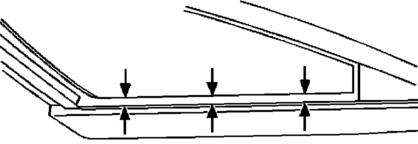 2. Take a measurement between the inner and outer hem flange at the top of the door. Refer to the illustration above. If that measurement is 27 mm (1.06 in) or lower, proceed to step 3.