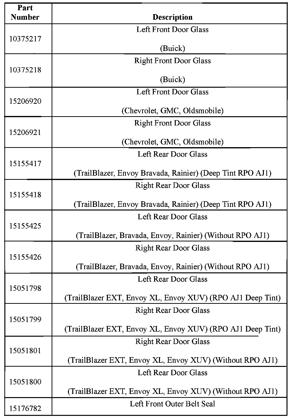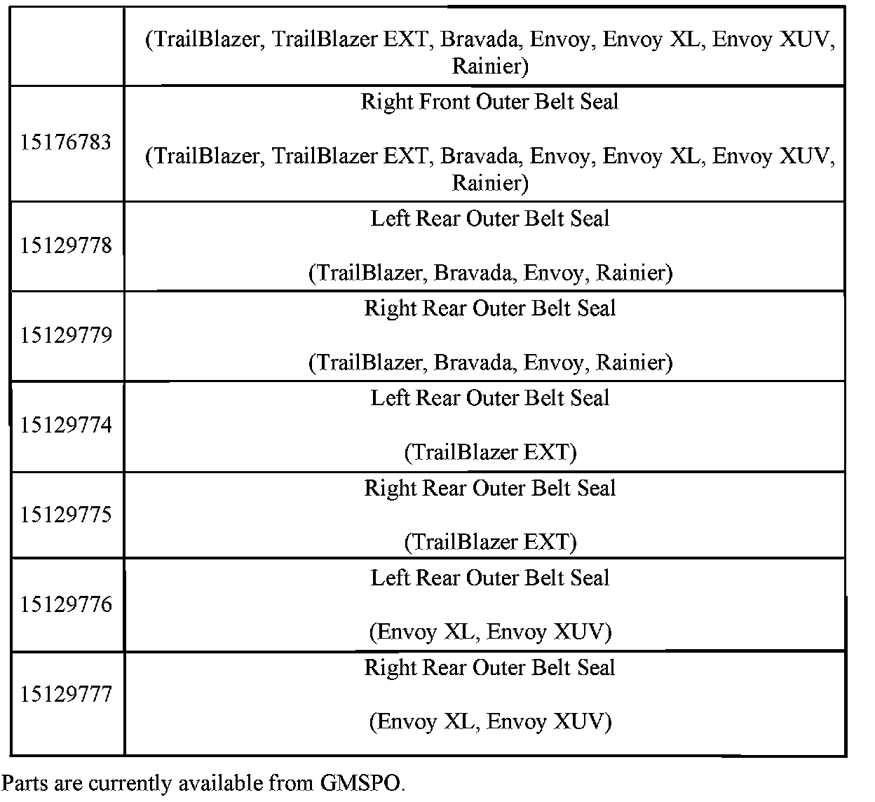 This bulletin is being revised to correct the model designations for the last four parts listed in the Parts Information table. Please discard Corporate Bulletin Number 04-08-64-012B (Section 08 -- Body and Accessories).