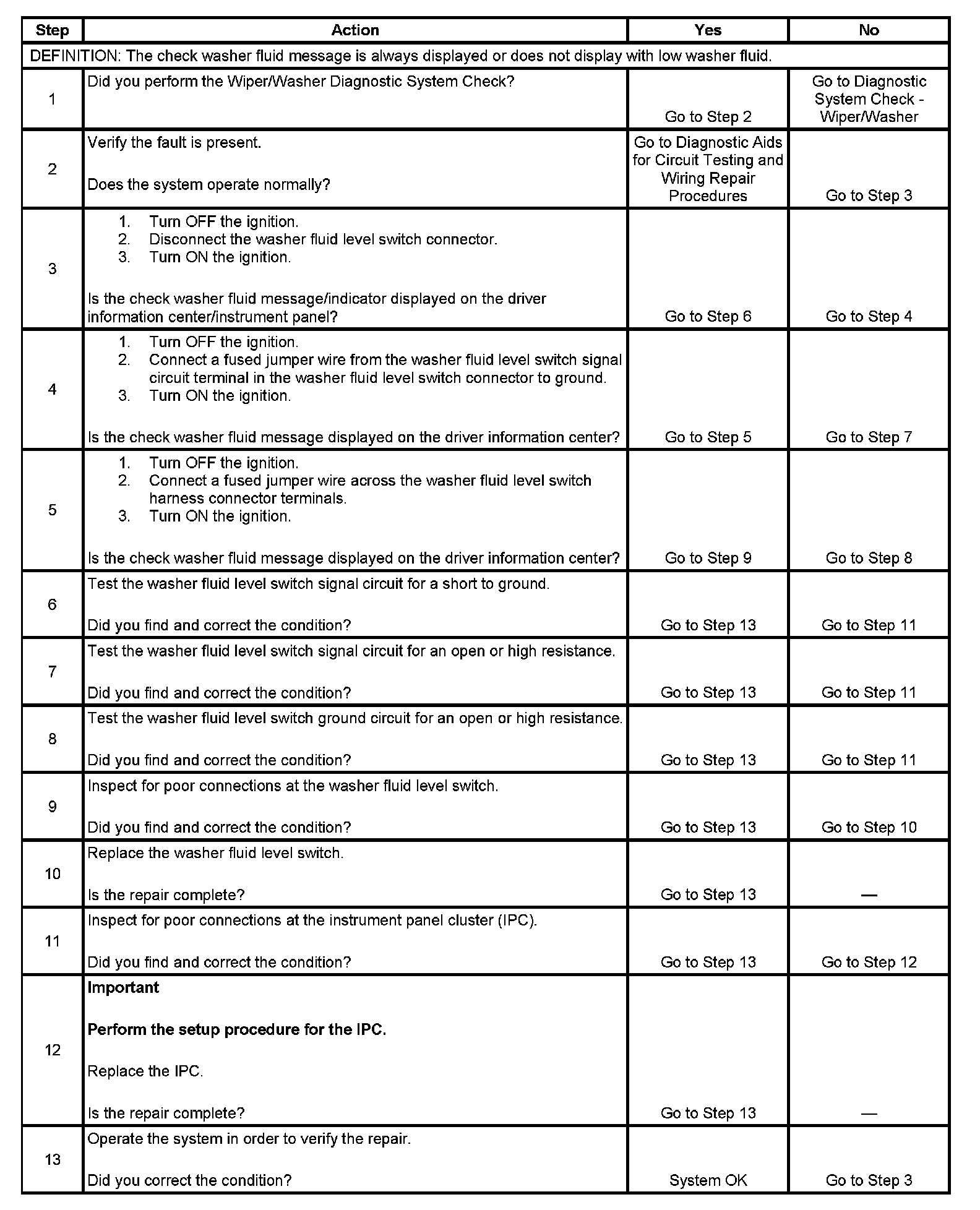 Low Washer Fluid Indicator Malfunction