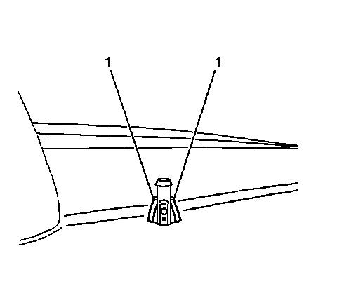 4. Remove the washer nozzles from the air inlet grille panel by squeezing the retaining tabs (1).