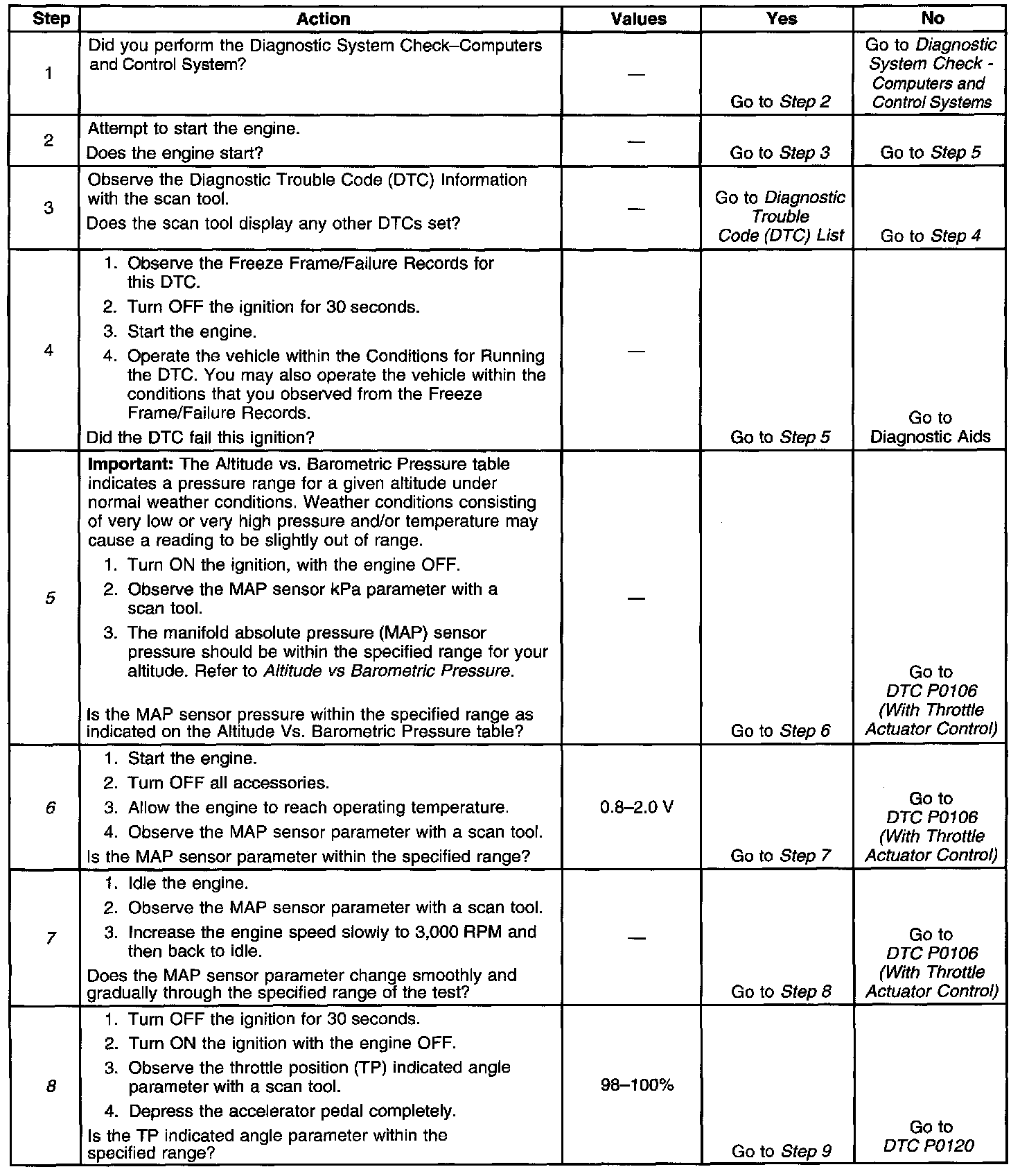 5. This step will determine if the MAP sensor pressure is within the proper range for a given altitude.