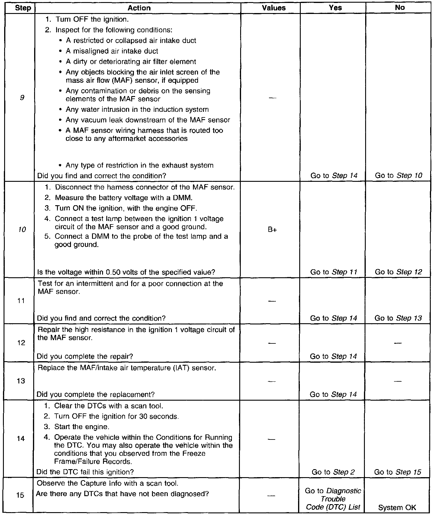 9. This step will determine if any mechanical faults have caused this DTC to set.