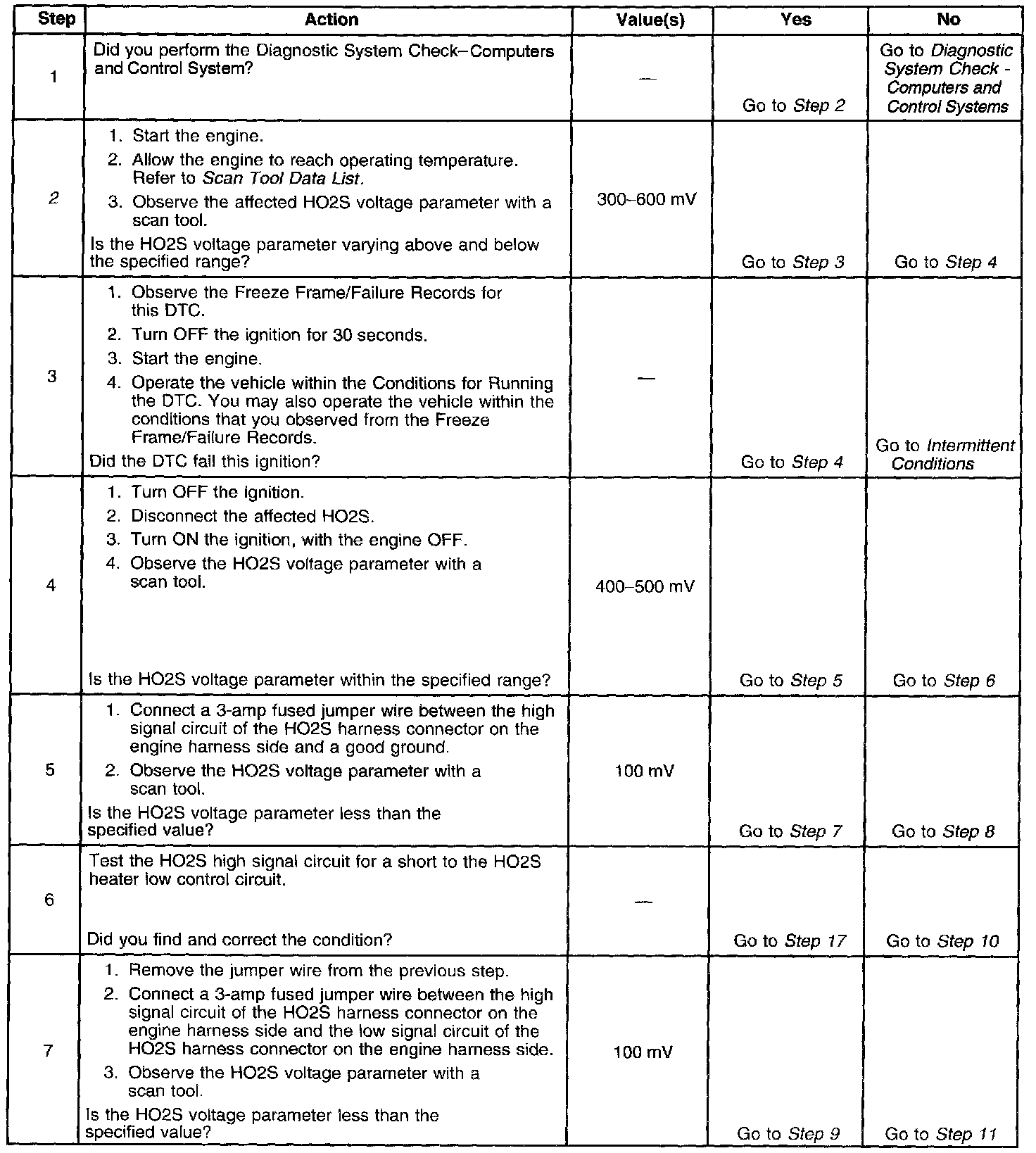 The PCM detects that the affected HO2S voltage parameter is more than 540 mV for 5 seconds.