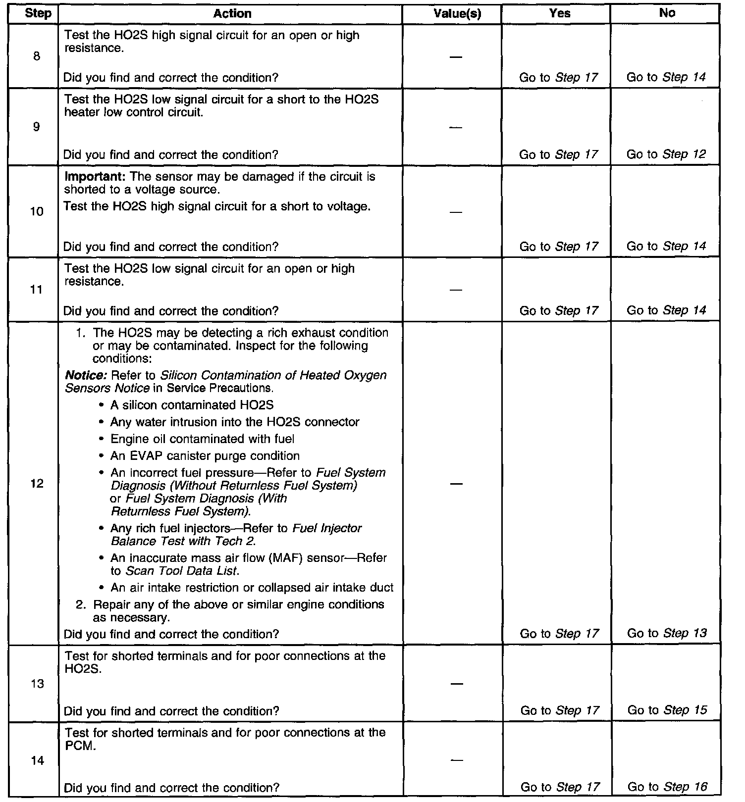 The number below refers to the step number on the diagnostic table.