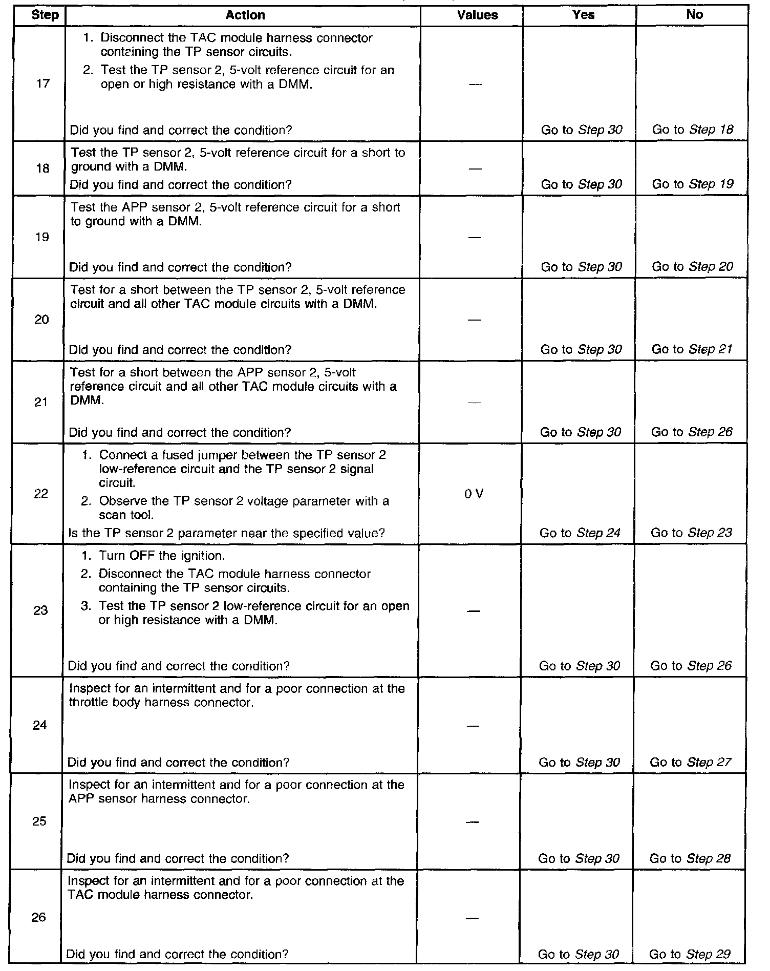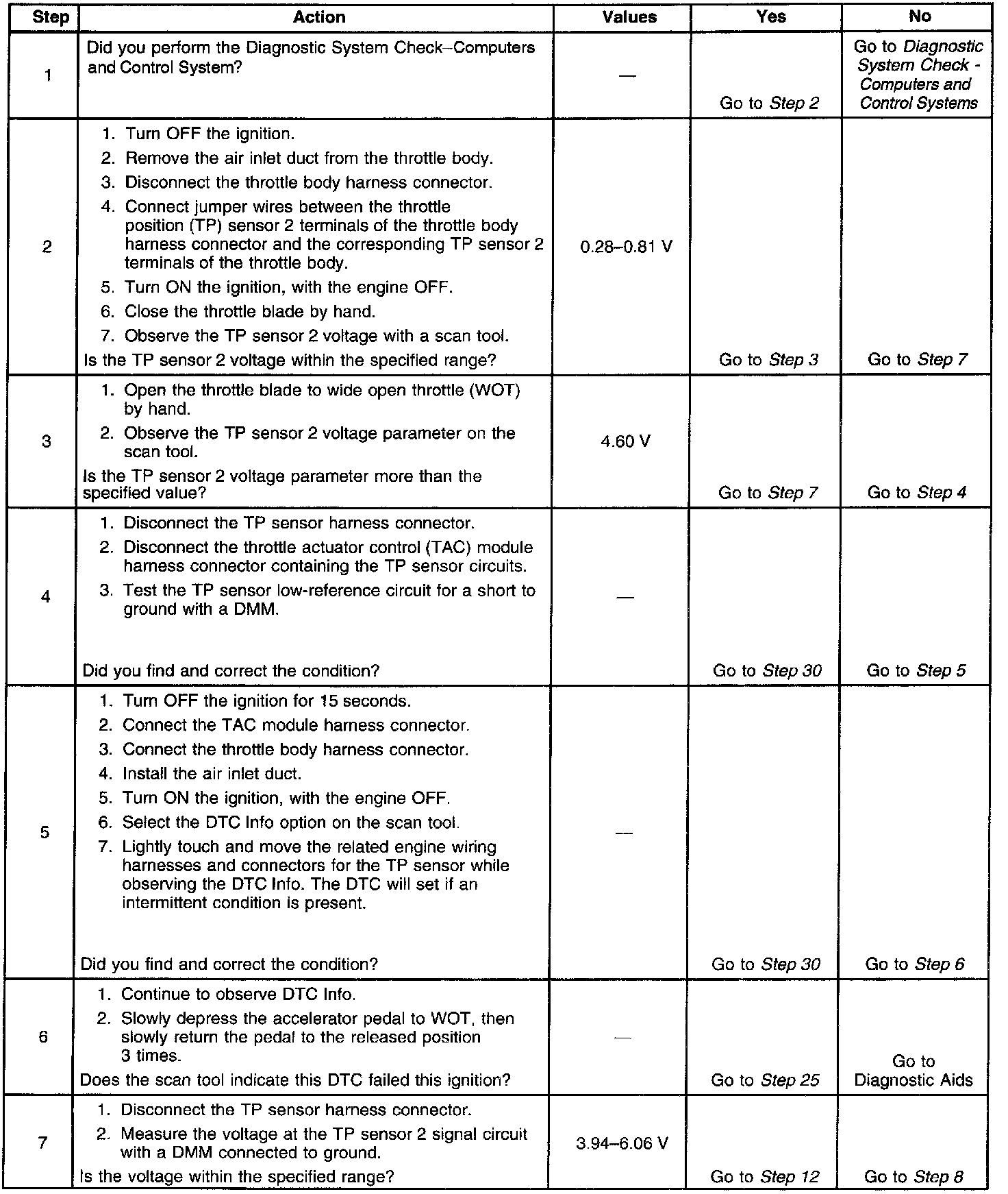 - The TP sensor 2 voltage is less than 0.28 volt or greater than 4.60 volts.