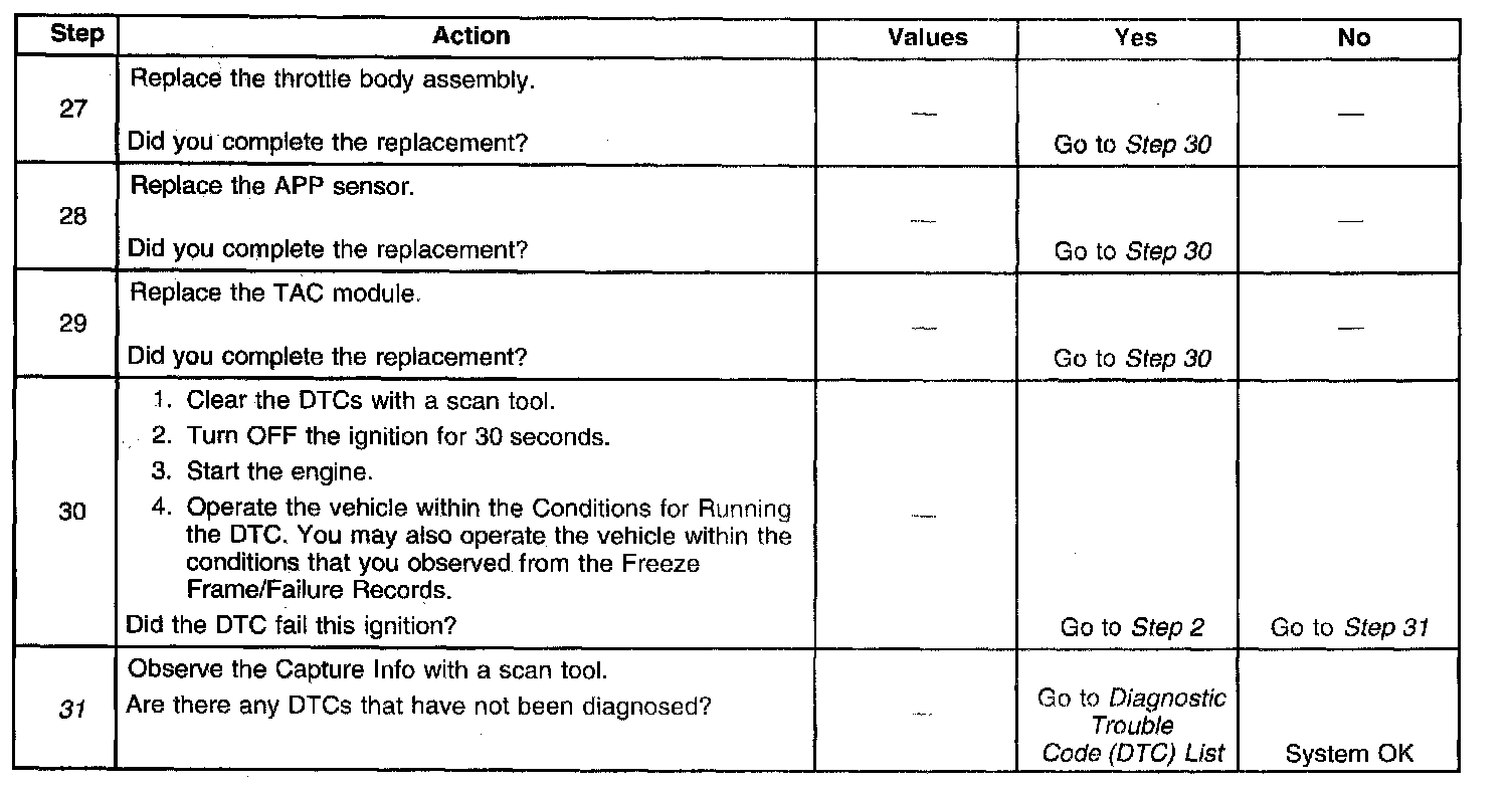 31. When the TAC module detects a condition within the TAC system, more than one TAC system related DTC may set. This is due to the many redundant tests run continuously on this system. Locating and repairing one individual condition may correct more than one DTC. Disconnecting components during testing may set additional DTCs. Keep this in mind when reviewing the stored information, Capture Info.