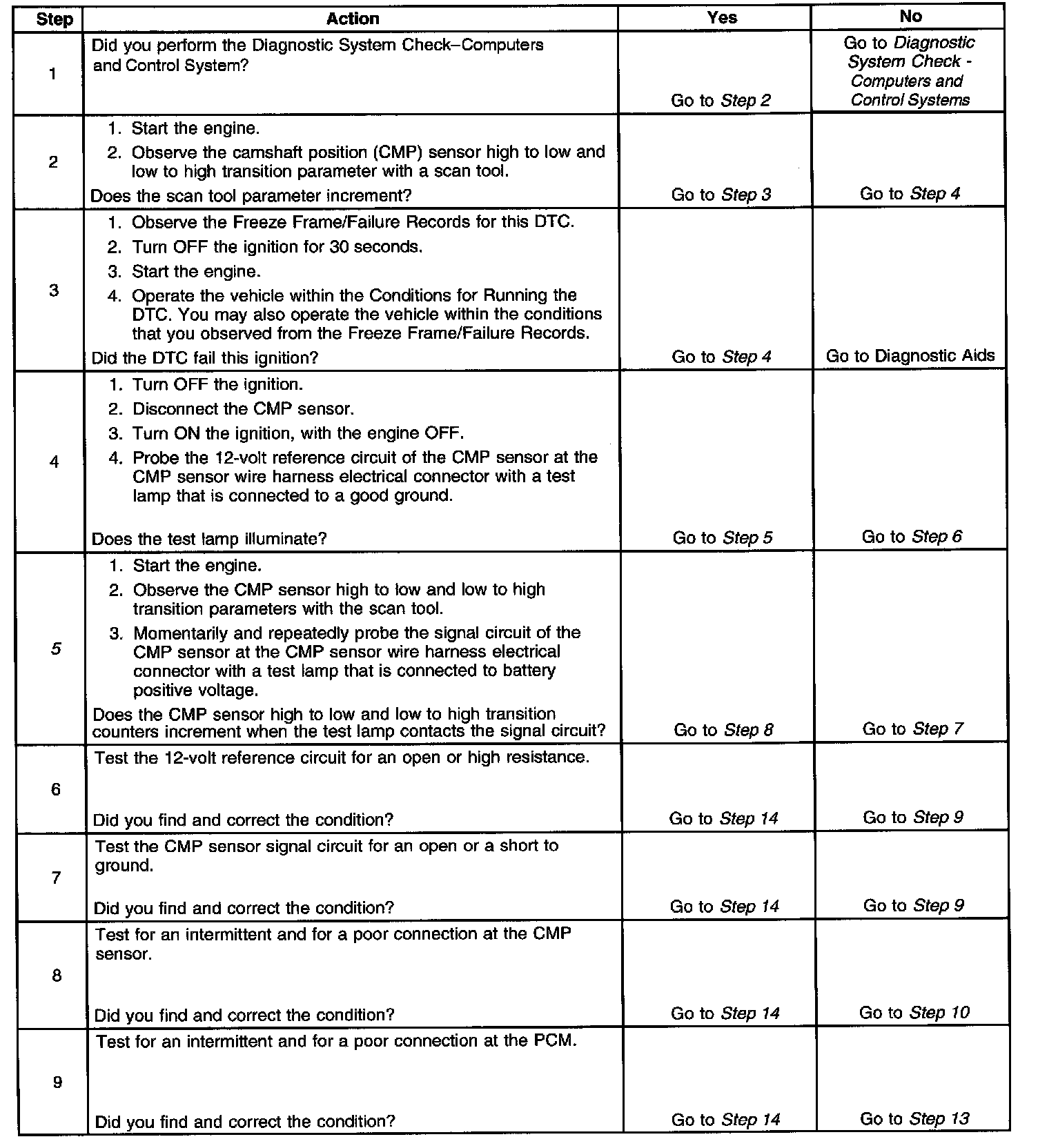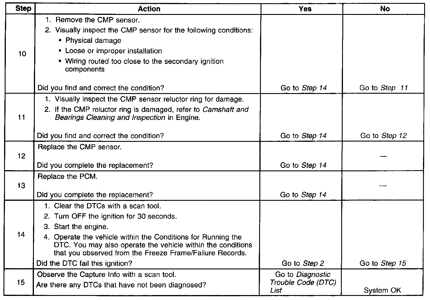 The CMP sensor 1 X signal is used by the PCM to determine if the cylinder at top dead center (TDC) is on the firing stroke or the exhaust stroke. The PCM can determine TDC for all cylinders by using the CKP sensor 24 X signal alone. The engine will start without a CMP signal as long as the PCM receives the CKP sensor 24 X signal. A slightly longer cranking time may be a symptom of this condition. The system attempts synchronization and looks for an increase in engine speed indicating that the engine started. If the PCM does not detect an increase in engine speed, the PCM assumes that the PCM incorrectly synchronized to the exhaust stroke and re-syncs to the opposite cam position. If the PCM detects that a CMP signal is constantly low, DTC P0342 sets.