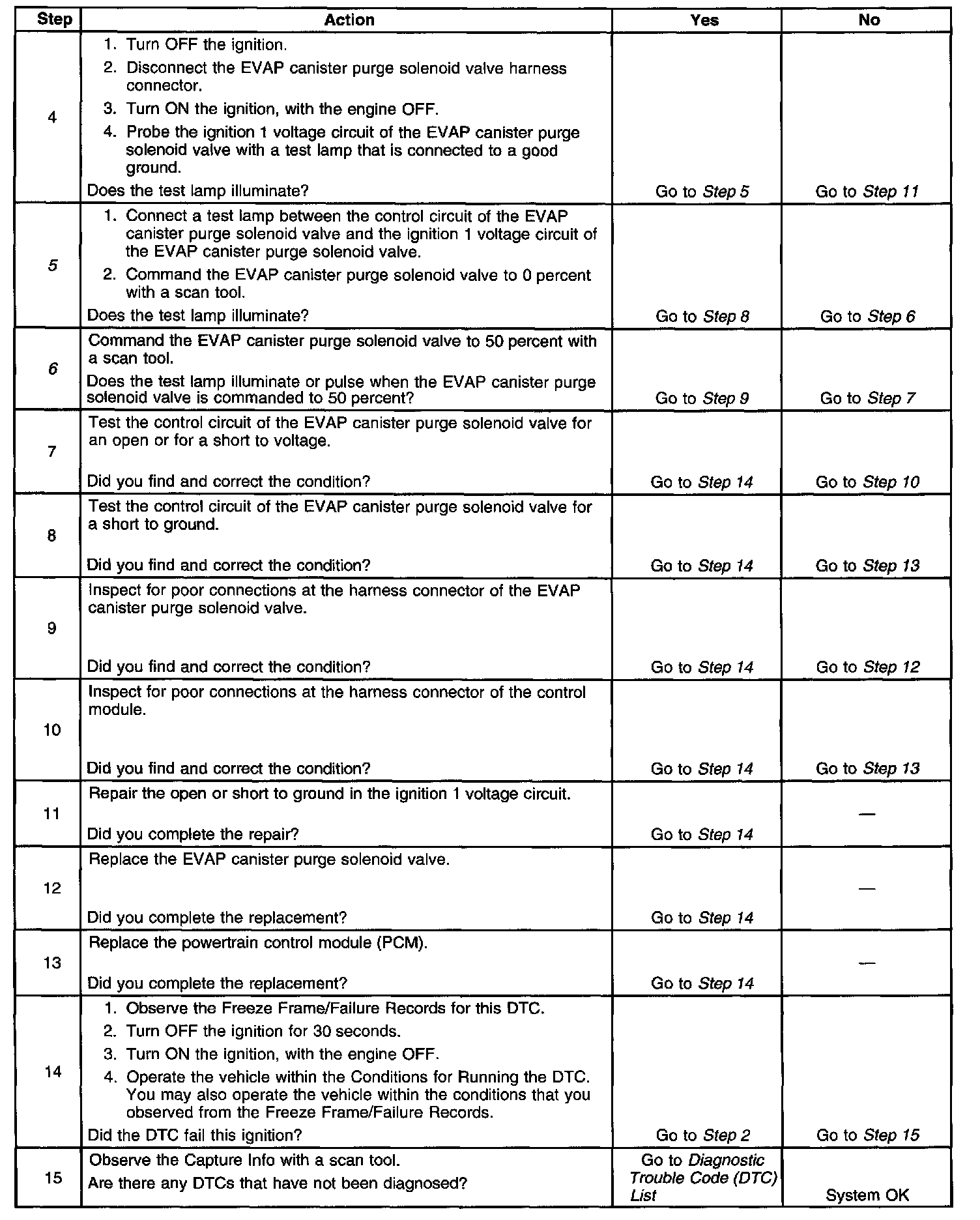 6. This step tests if a ground is constantly being applied to the EVAP canister purge solenoid valve.