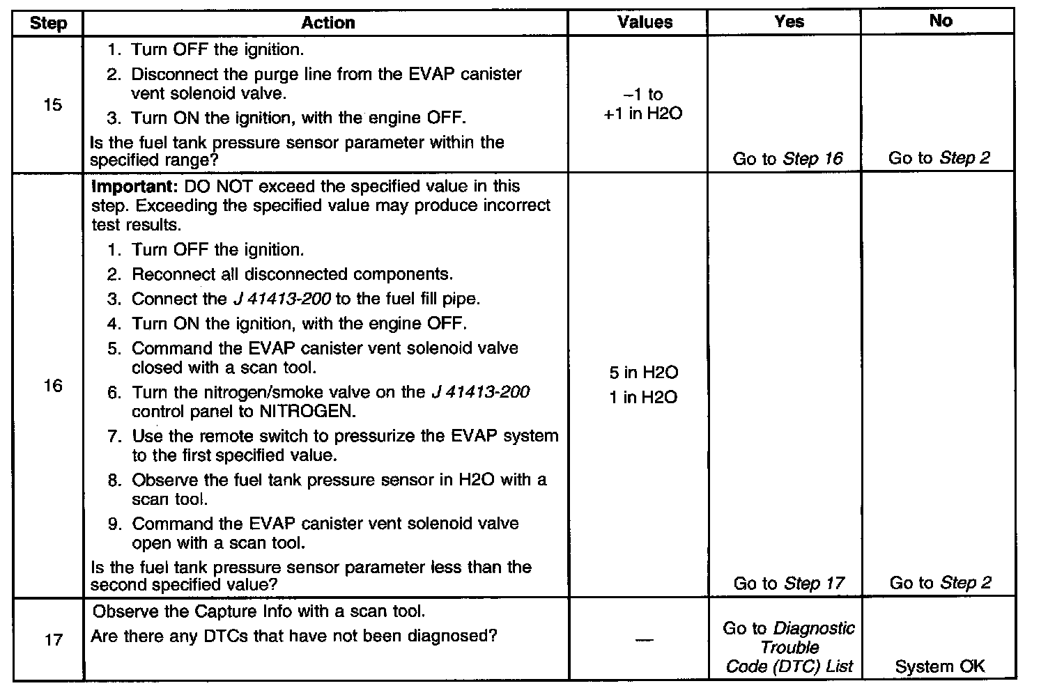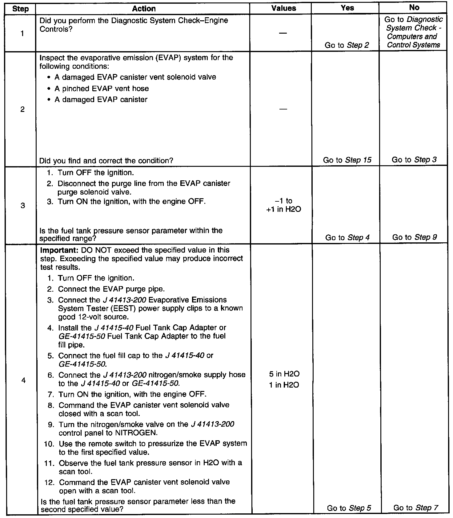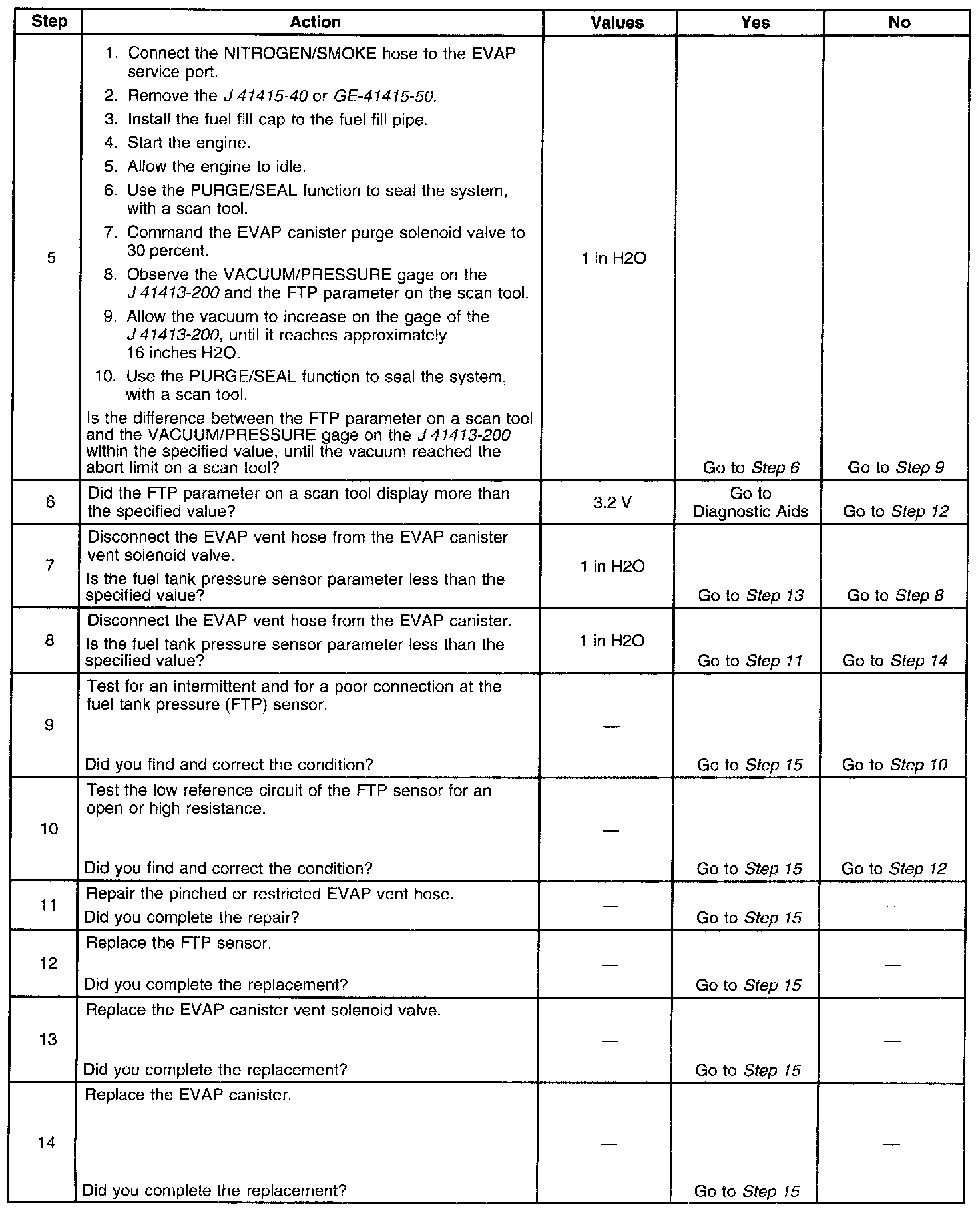 - The fuel tank pressure sensor is less than -10 inches H2O.