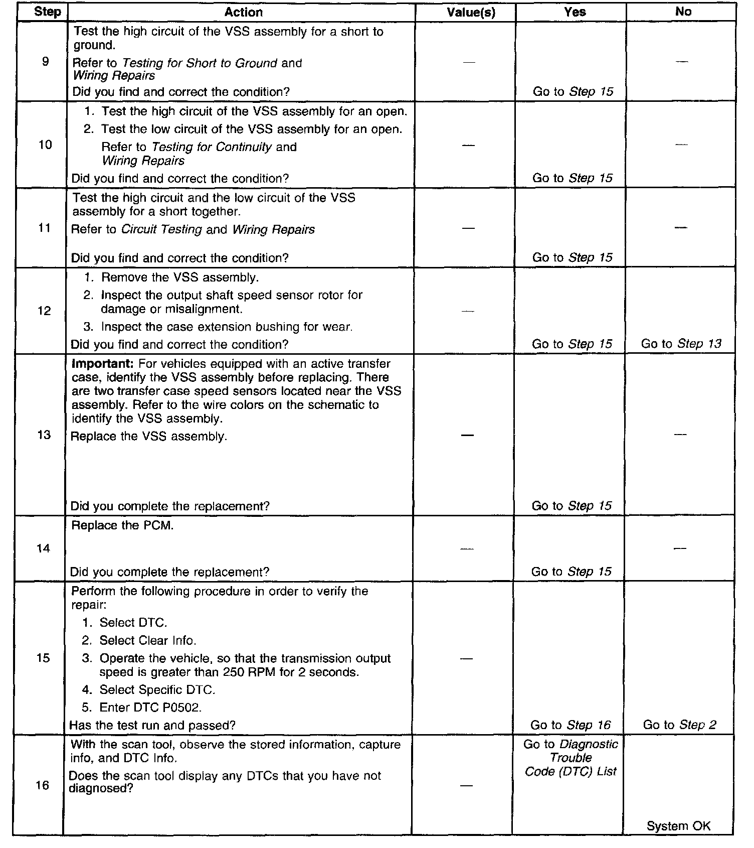 ^ The PCM stores DTC P0502 in PCM history during the second consecutive trip in which the Conditions for Setting the DTC are met.