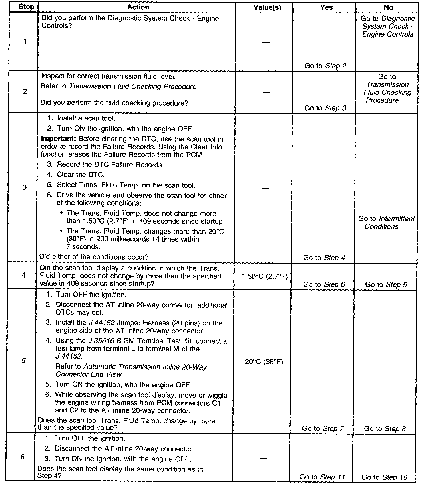 1. If any ECT DTCs P0117 or P0118 are set, then the default TFT is equal to 135°C (275°F).