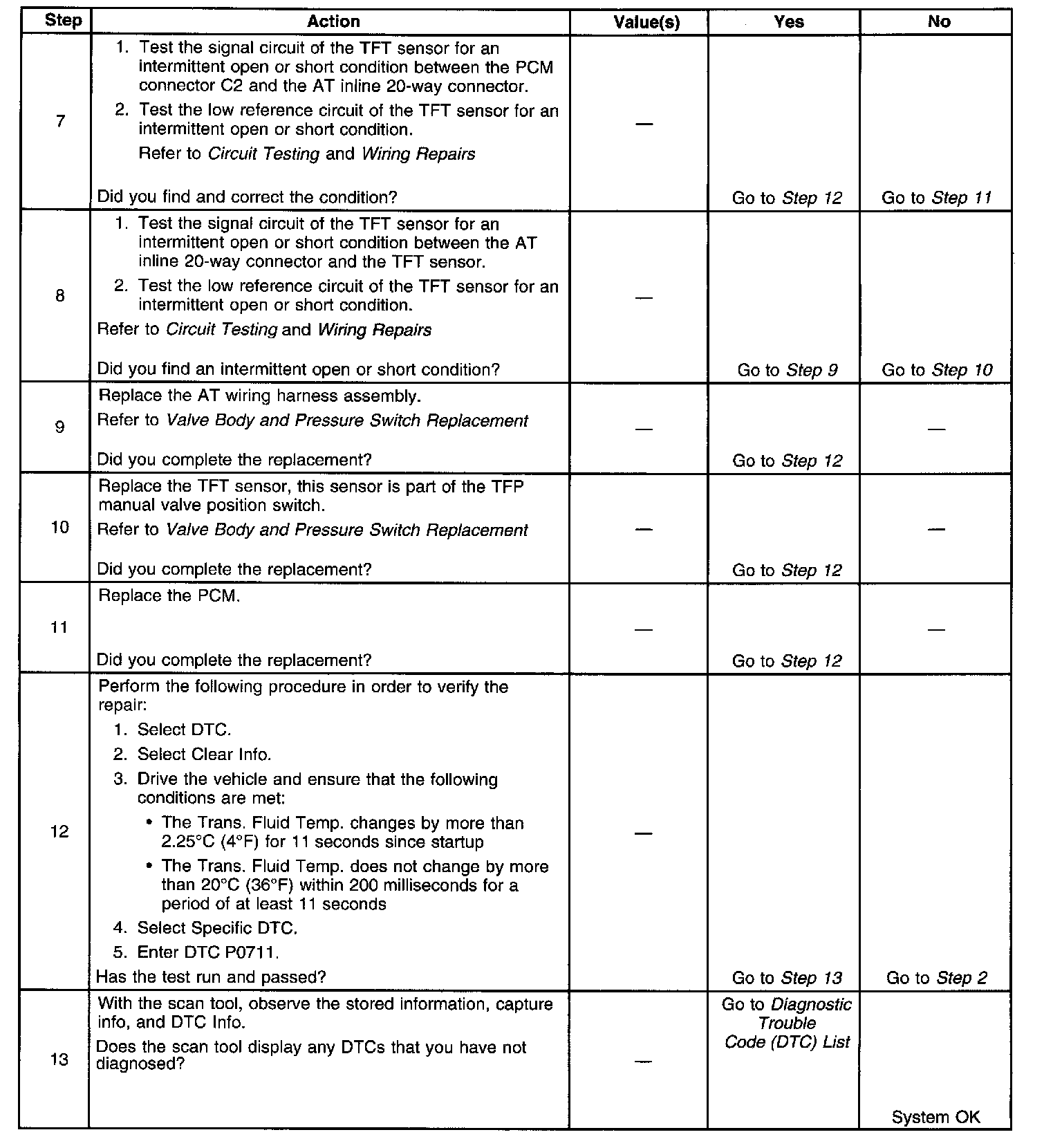 ^ The PCM stores DTC P0711 in PCM history.