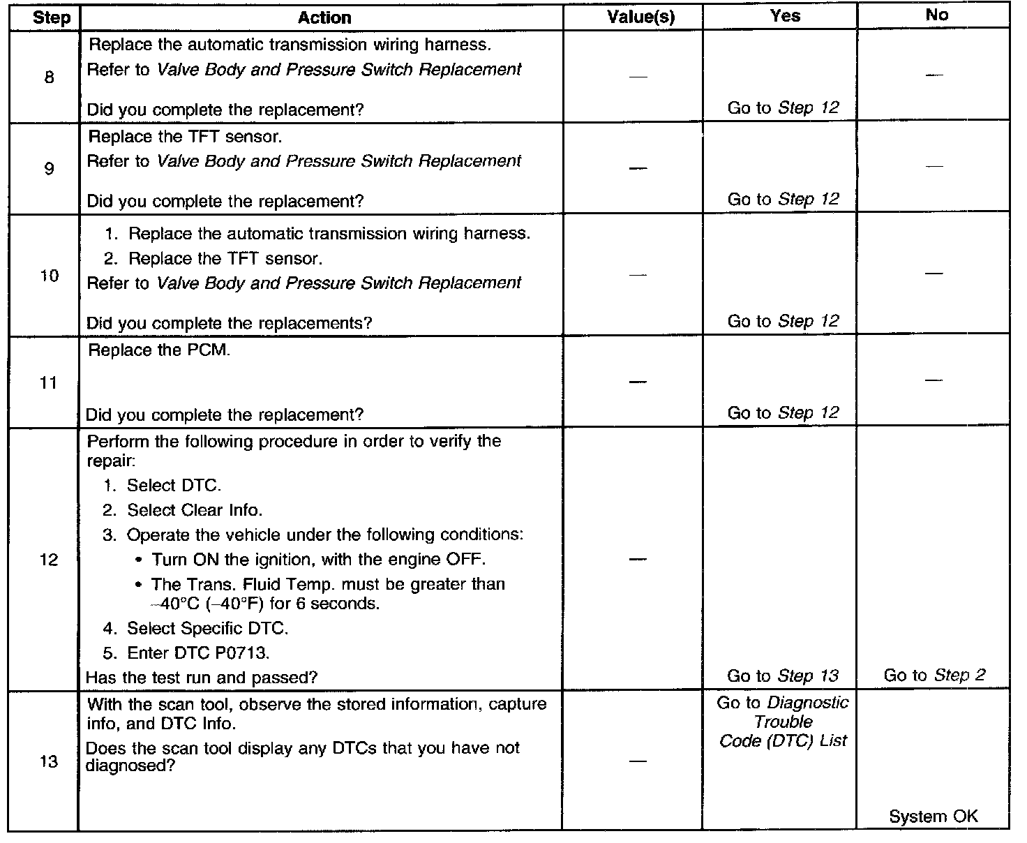 ^ The PCM stores DTC P0713 in PCM history.