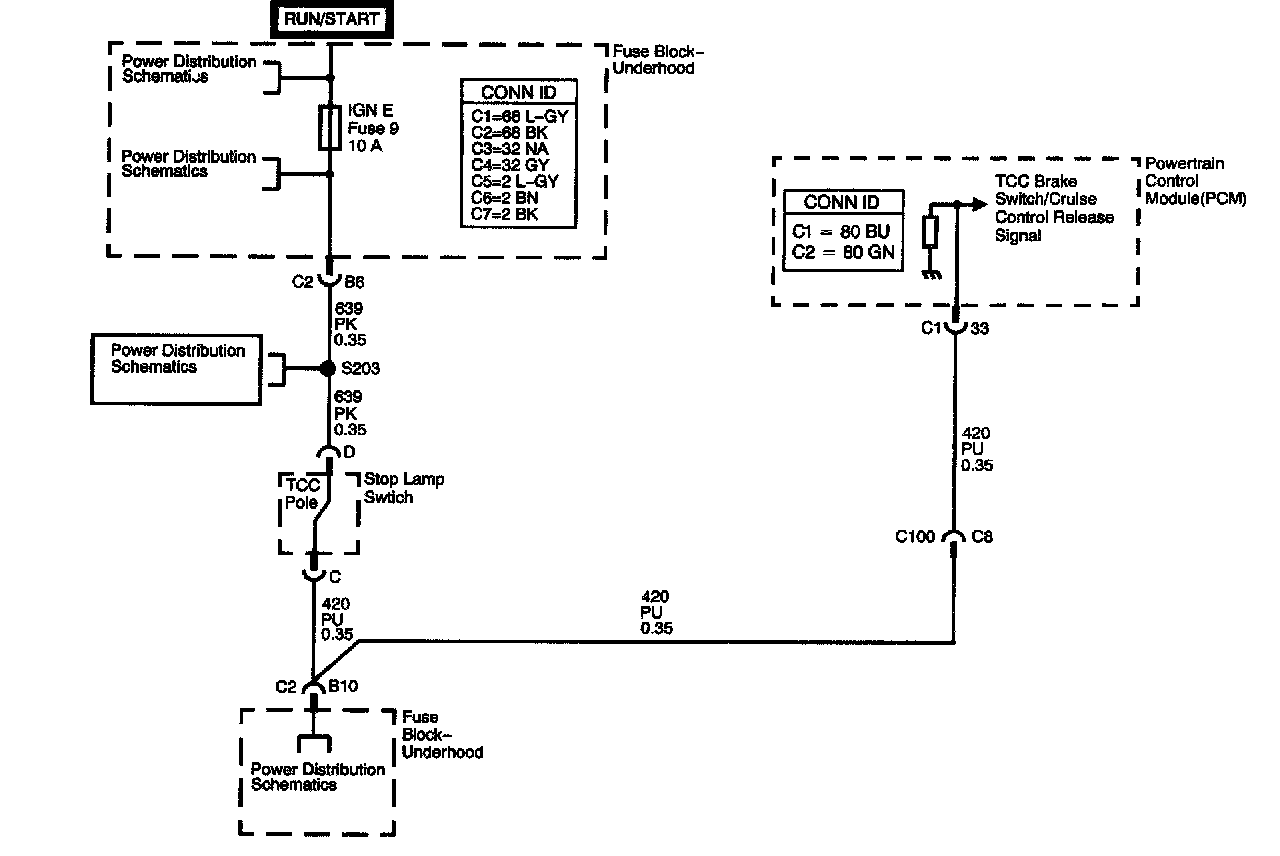 When the PCM detects a closed brake switch circuit, 12 volts, high input, during decelerations, then DTC P0724 sets. DTC P0724 is a type C DTC.