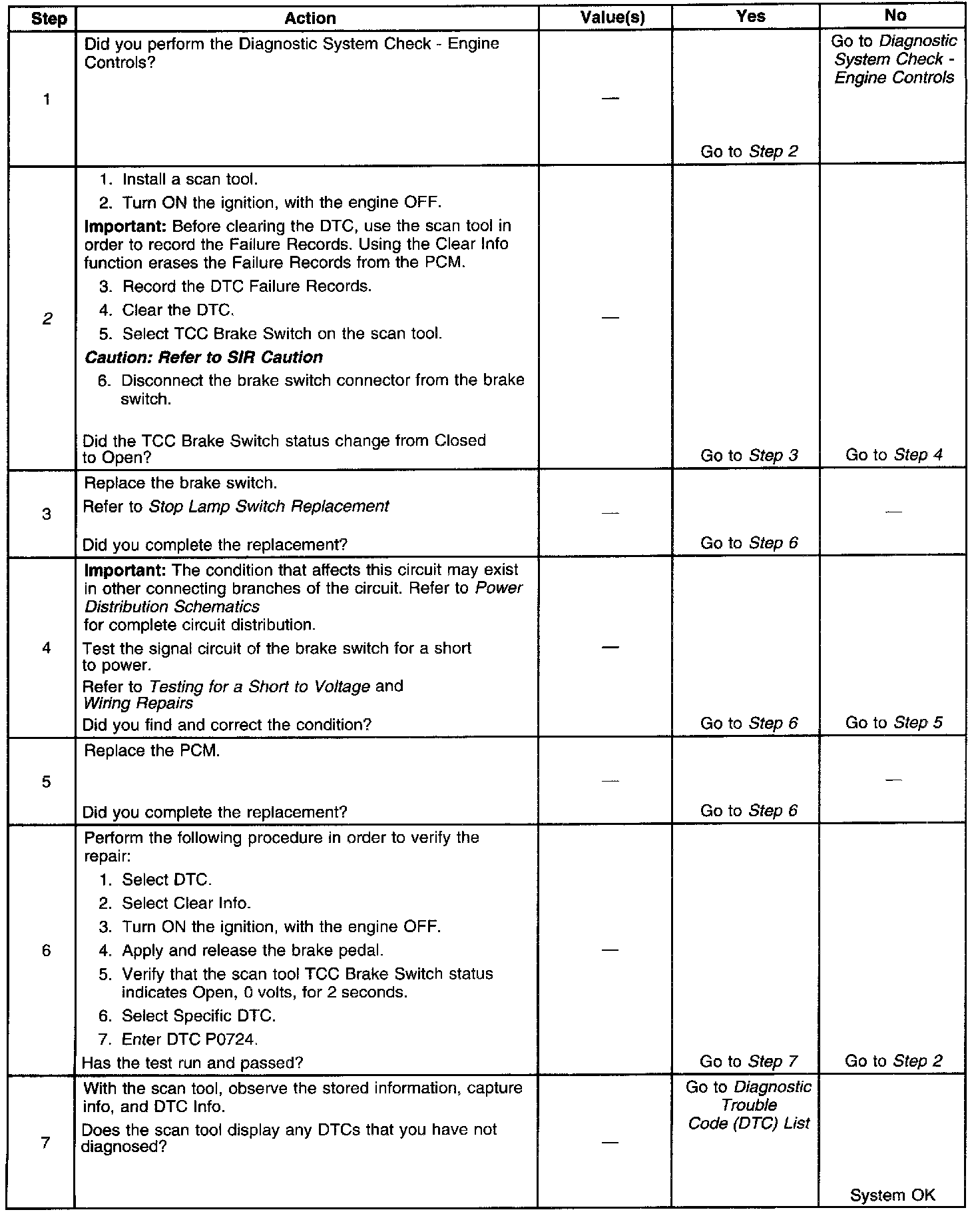 ^ Inspect for ABS DTCs. A faulty ABS condition may contribute to setting DTC P0724.