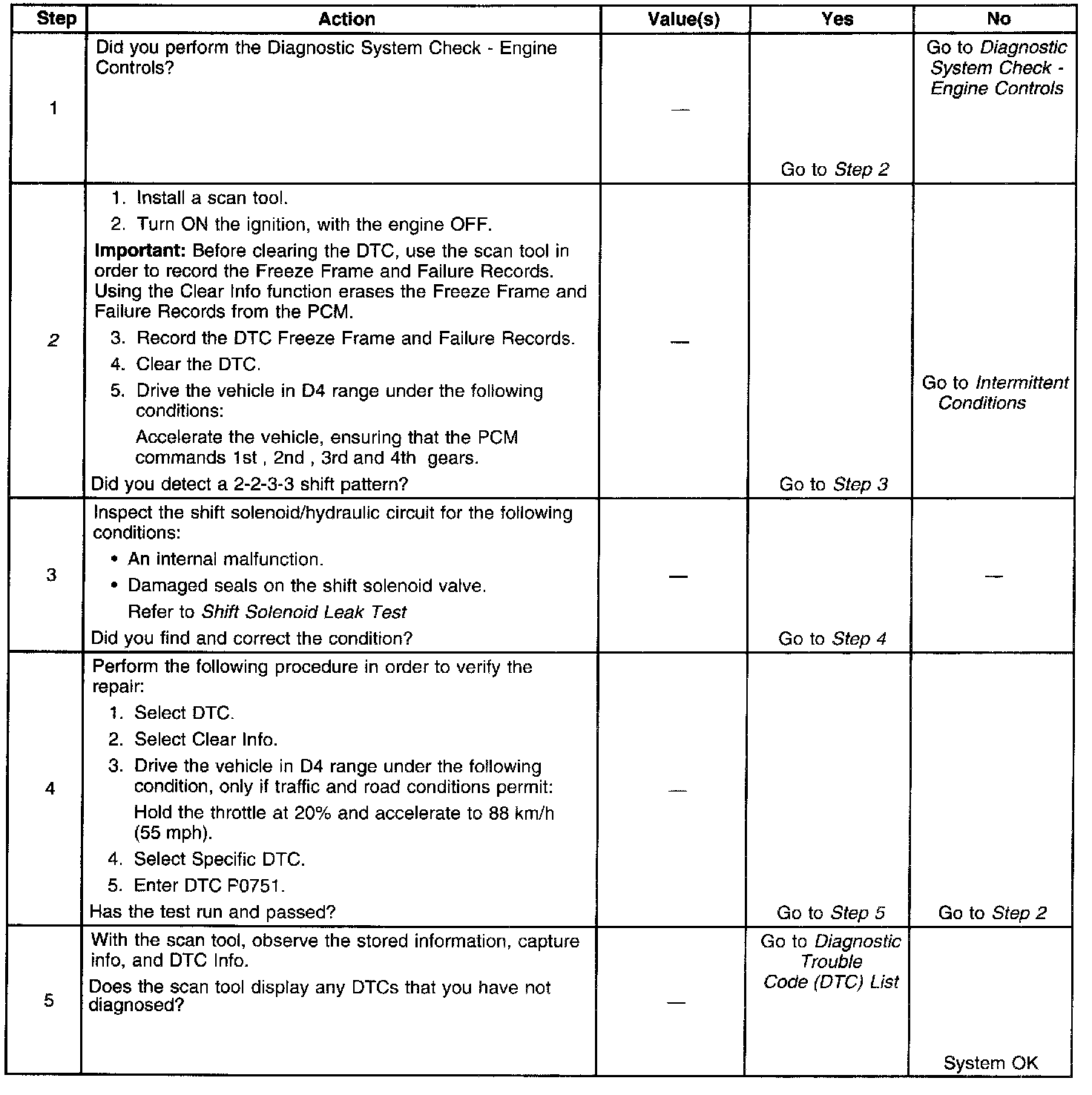 ^ The PCM stores DTC P0751 in PCM history.