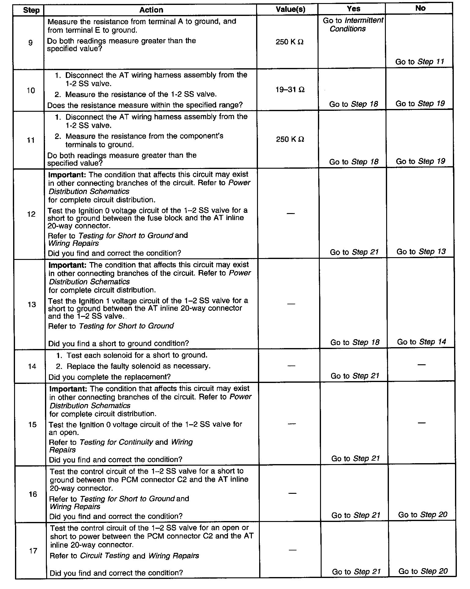 8. This step measures the resistance of the AT wiring harness assembly and of the 1-2 SS valve.