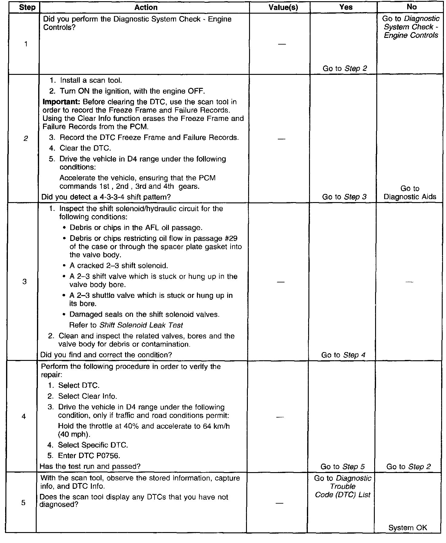 When the PCM detects a 4-3-3-4 shift pattern, then DTC P0756 sets. DTC P0756 is a type A DTC.