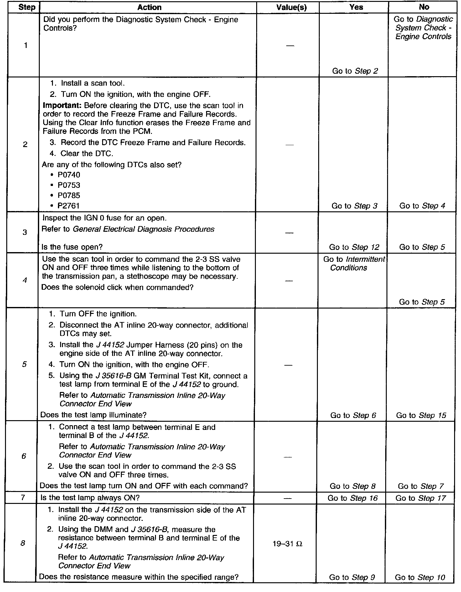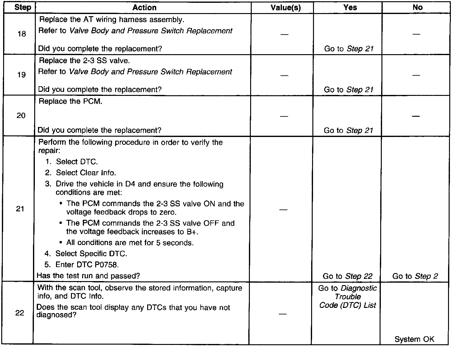When the PCM detects a continuous open, short to ground or short to power in the 2-3 SS valve circuit, then DTC P0758 sets. DTC P0758 is a type A DTC.