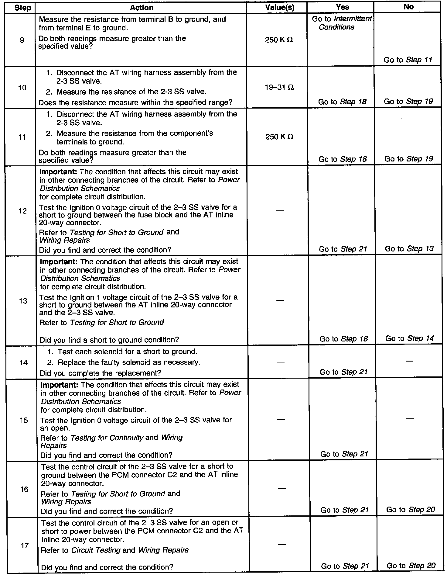 4. This step tests the function of the 2-3 SS valve and the automatic transmission (AT) wiring harness assembly.