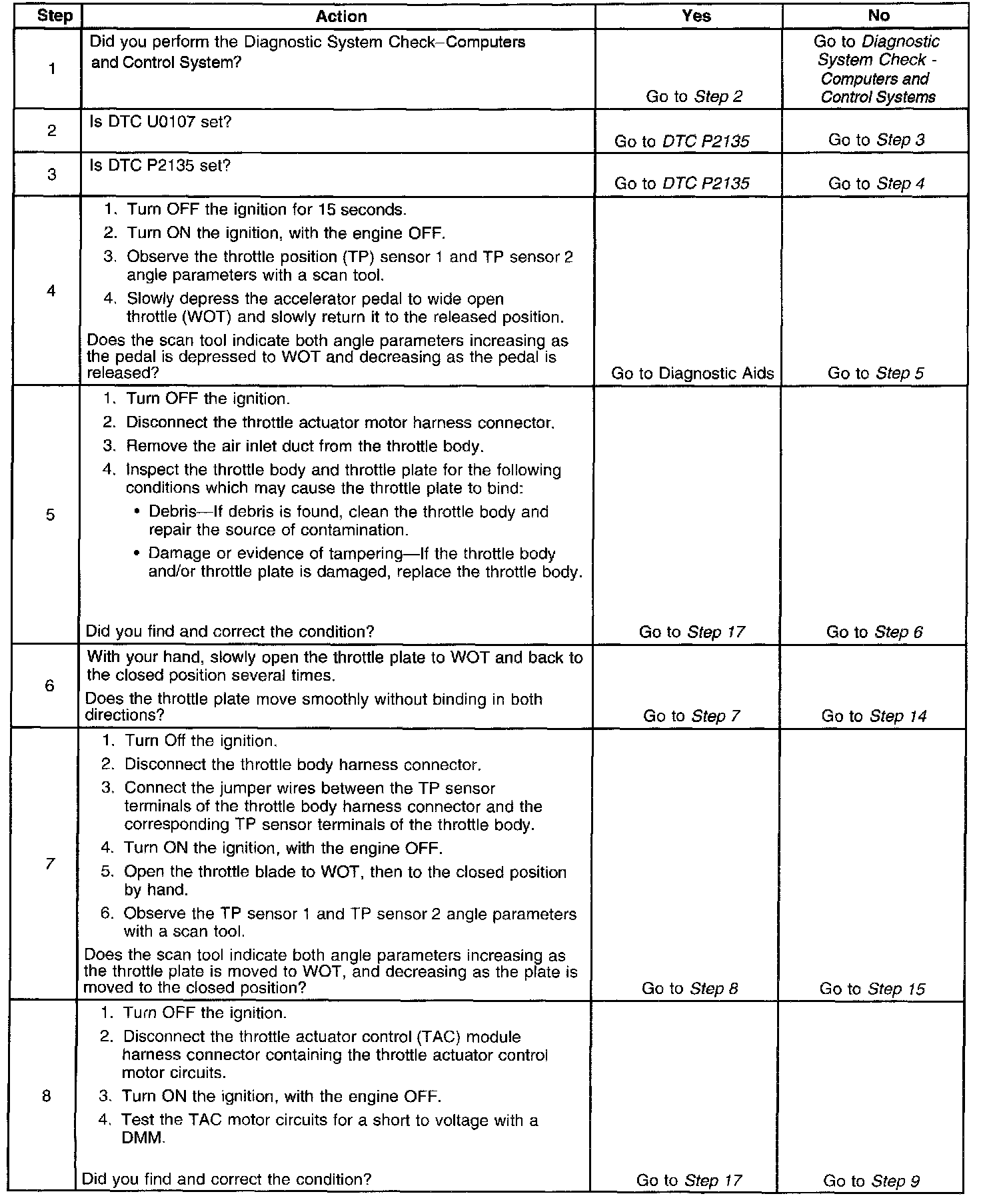 7. If the TP indicated angle does not follow the movement of the throttle blade and no TP sensor DTCs are set, there is a mechanical condition with the throttle shaft or the TP sensor.